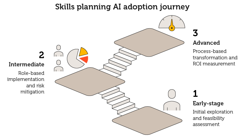Aimed at those in ‘planning’ and ‘doing’ roles, it focuses on function leads, team leads and team members. However, HR senior leaders should be familiar with this guide, to provide effective strategic alignment and support for AI skills planning, and ensure it is done collaboratively with the rest of the business.